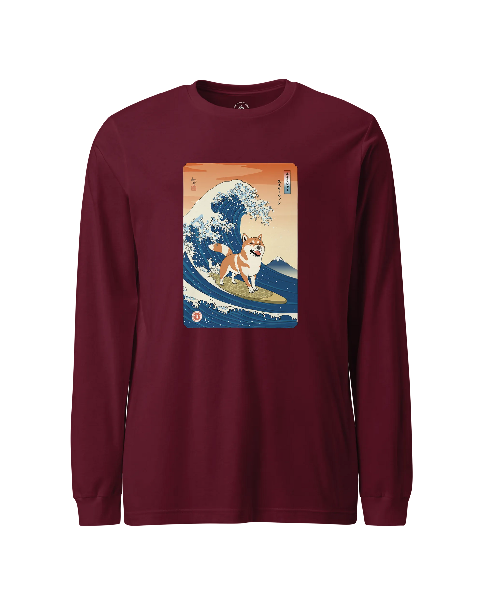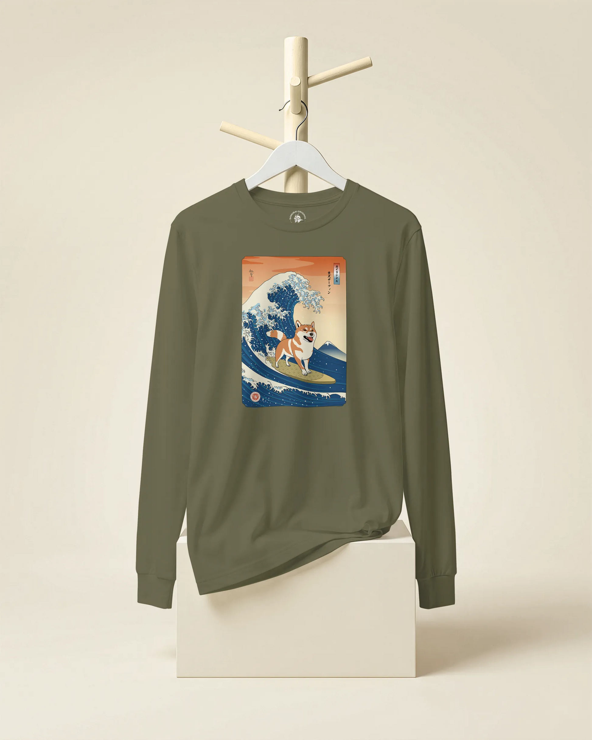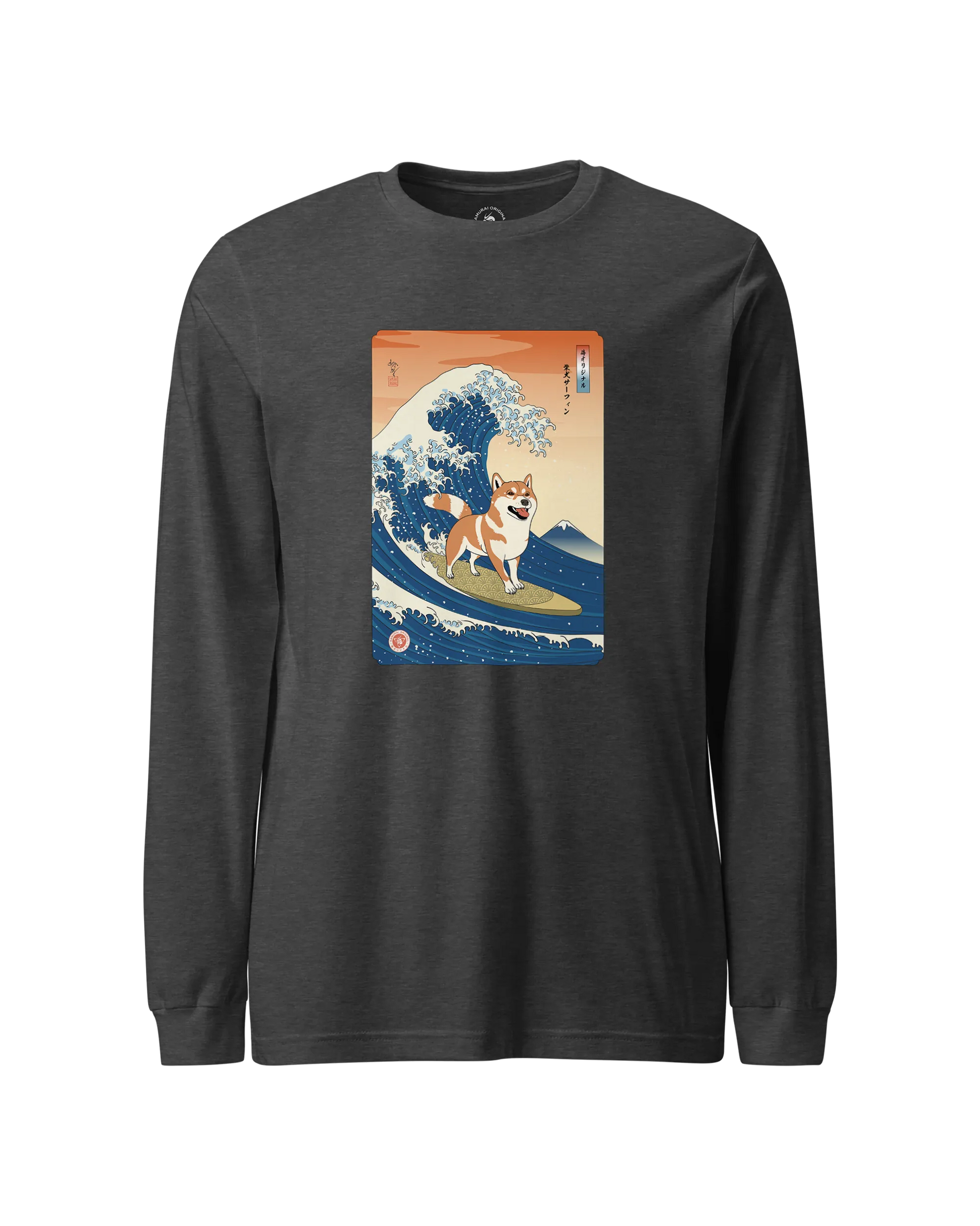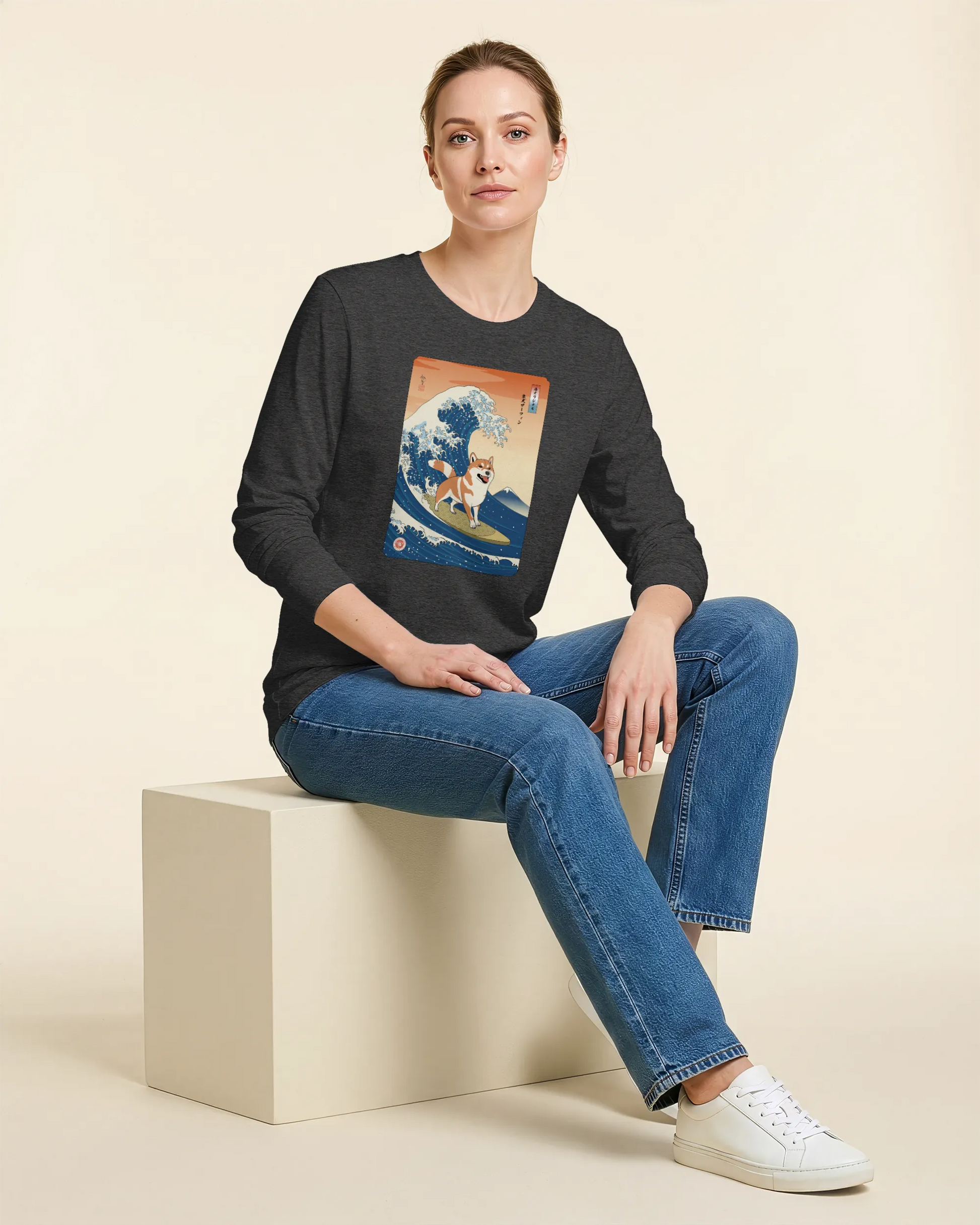 Shiba Inu Dog Surfing Ukiyo-e Unisex Long Sleeve Tee