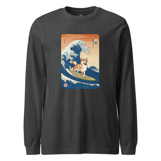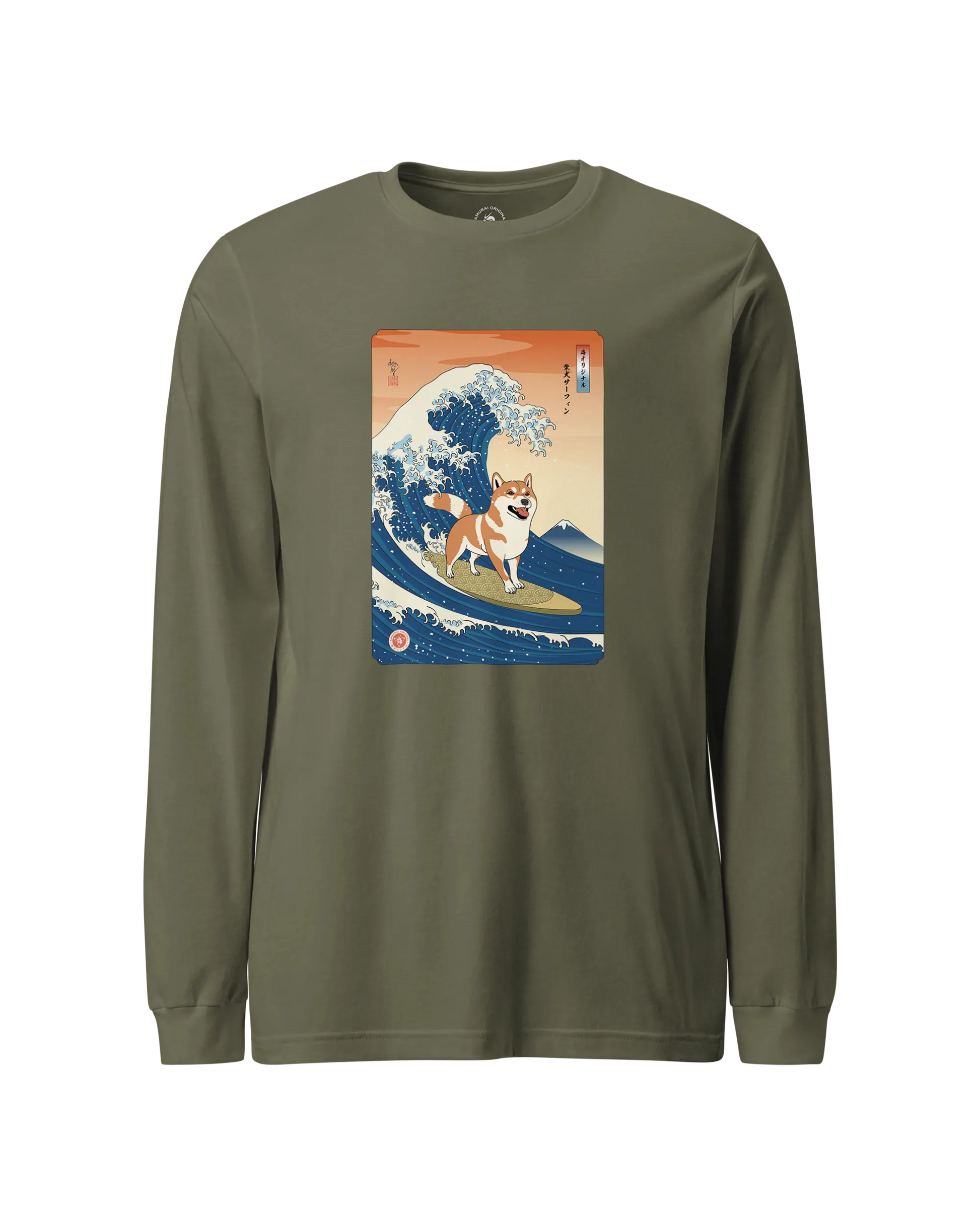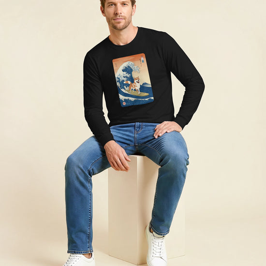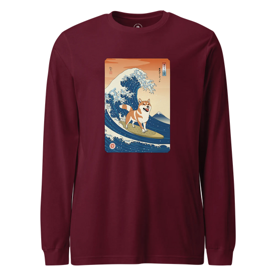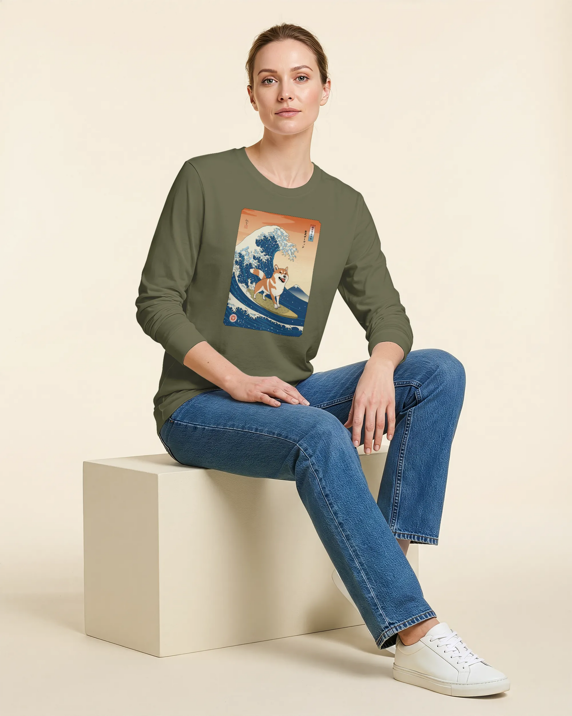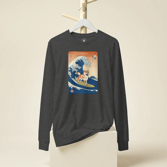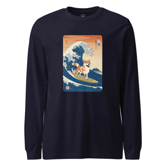 Shiba Inu Dog Surfing Ukiyo-e Unisex Long Sleeve Tee