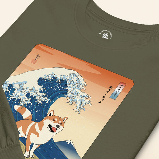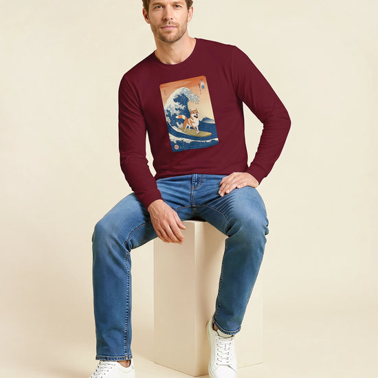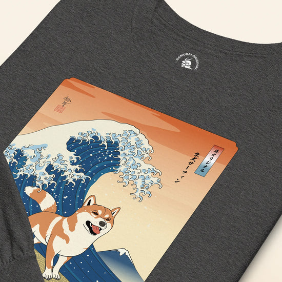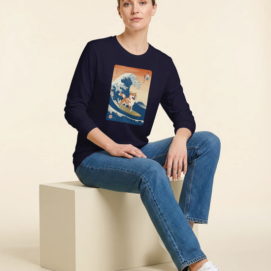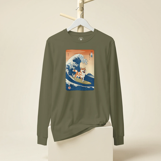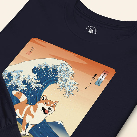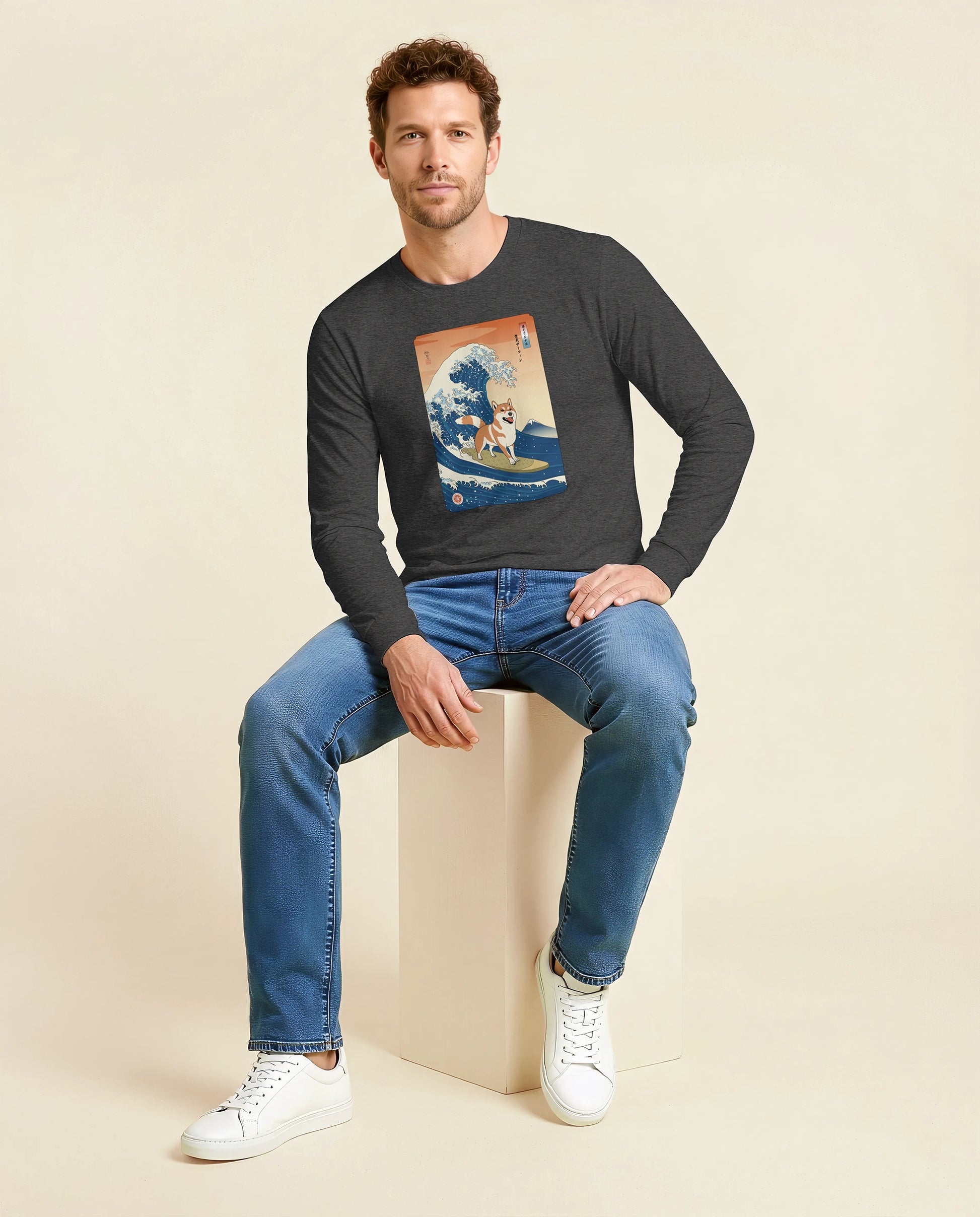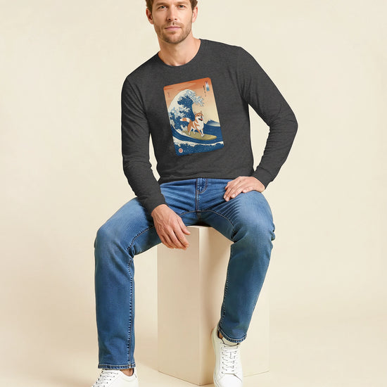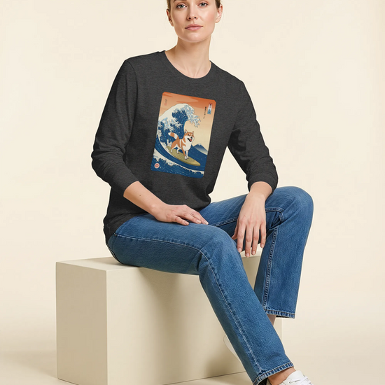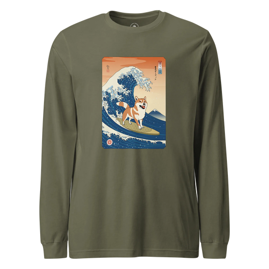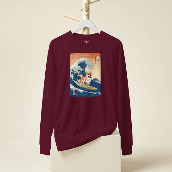 Shiba Inu Dog Surfing Ukiyo-e Unisex Long Sleeve Tee