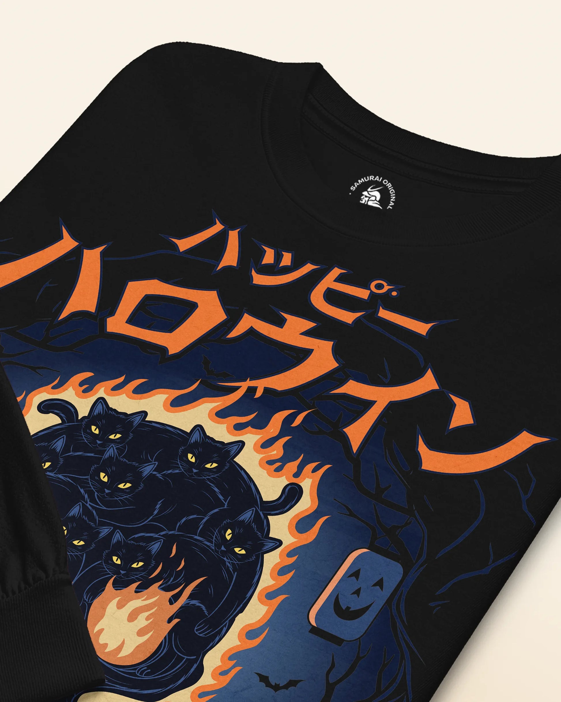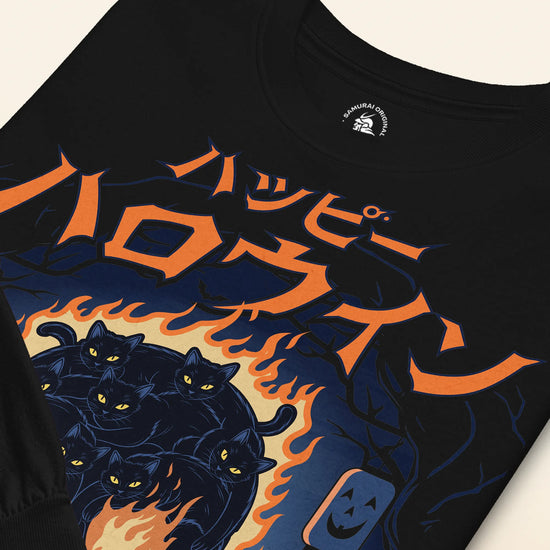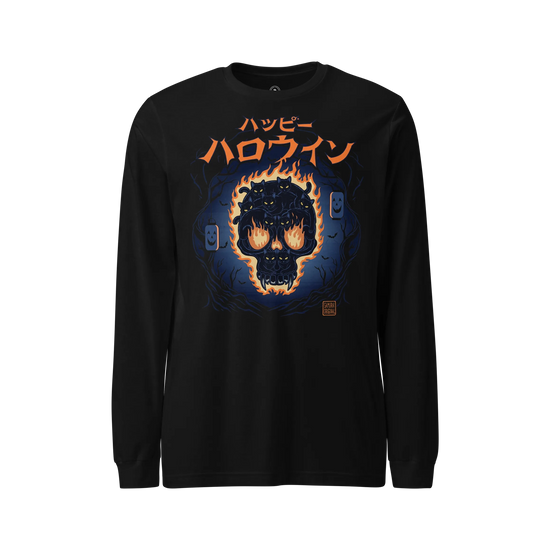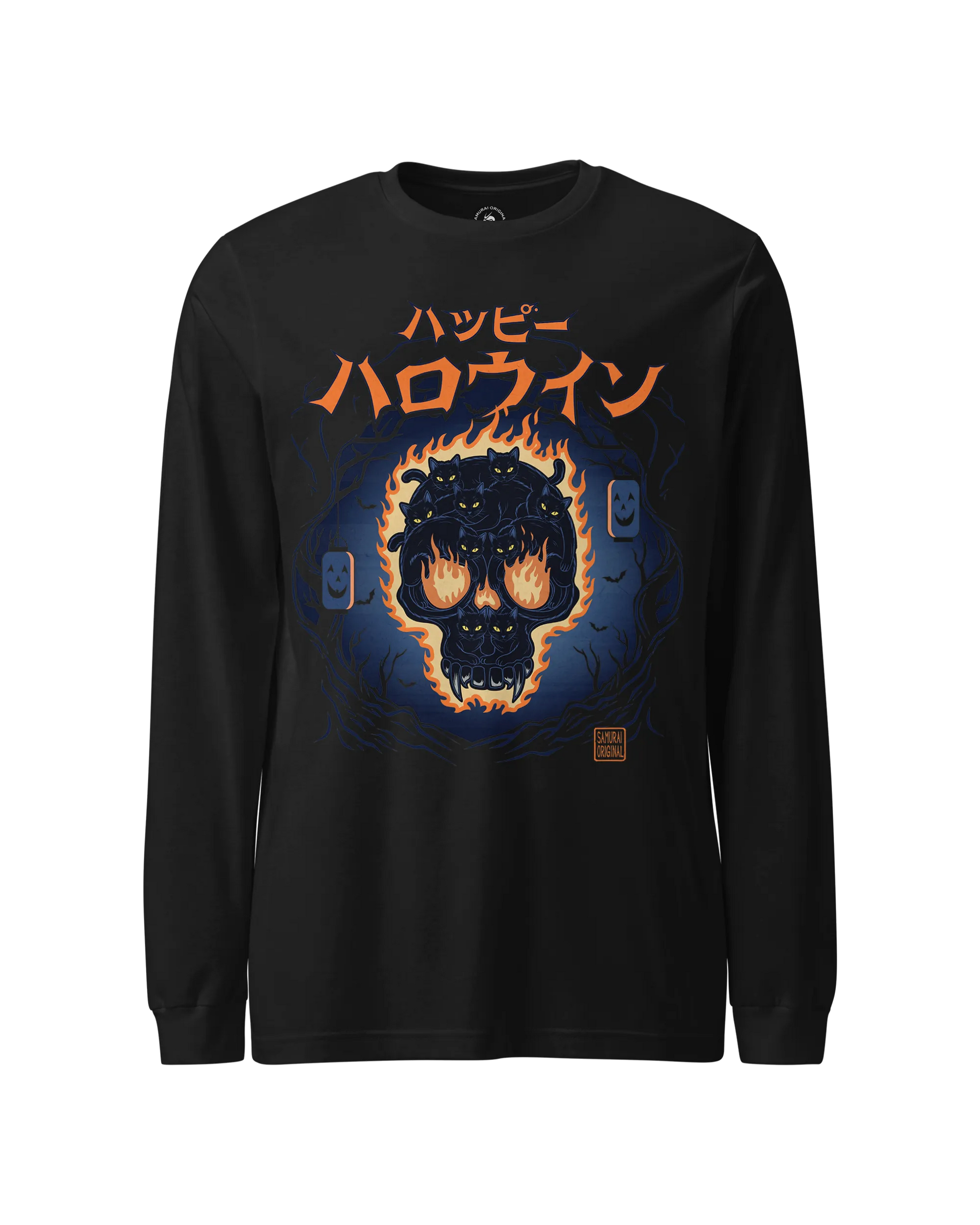Skull of Black Cats Ukiyo-e Unisex Long Sleeve Tee