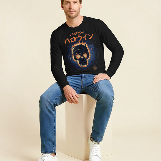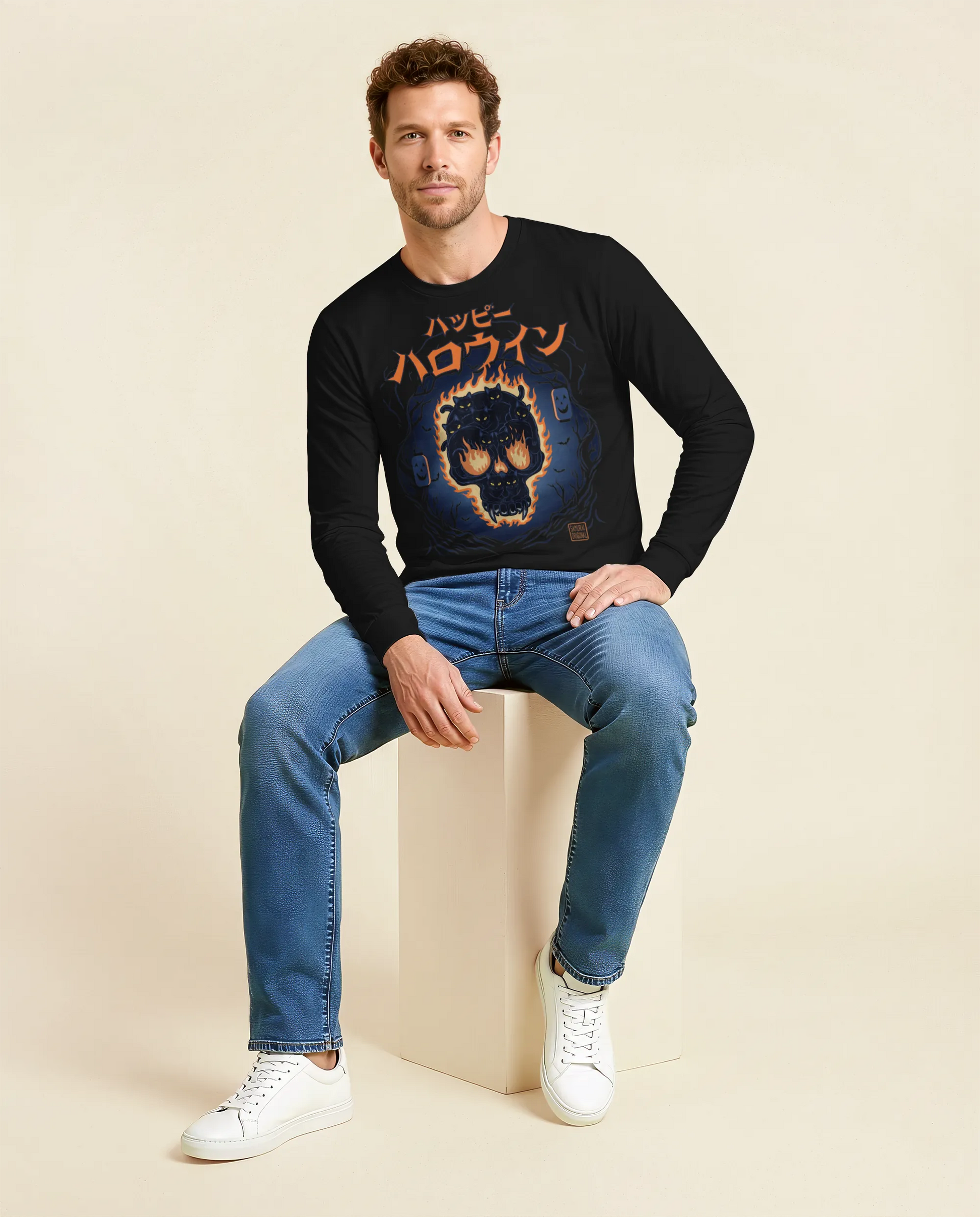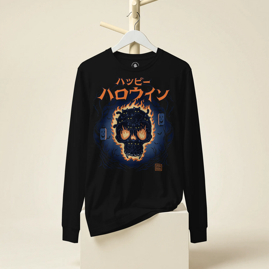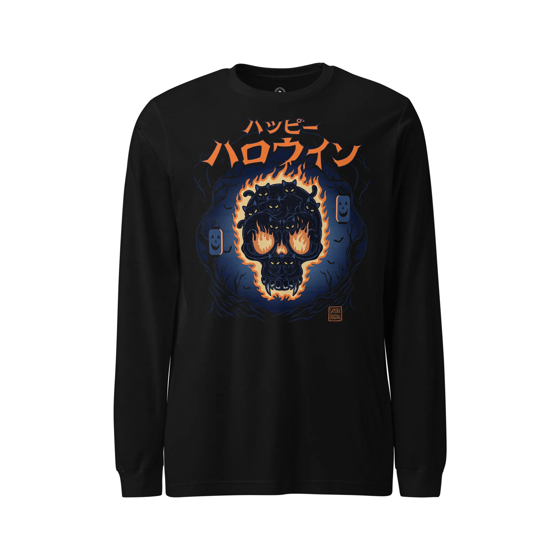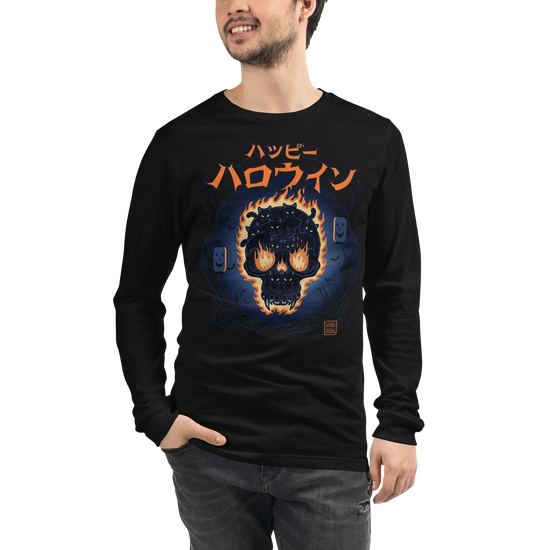Skull of Black Cats Ukiyo-e Unisex Long Sleeve Tee