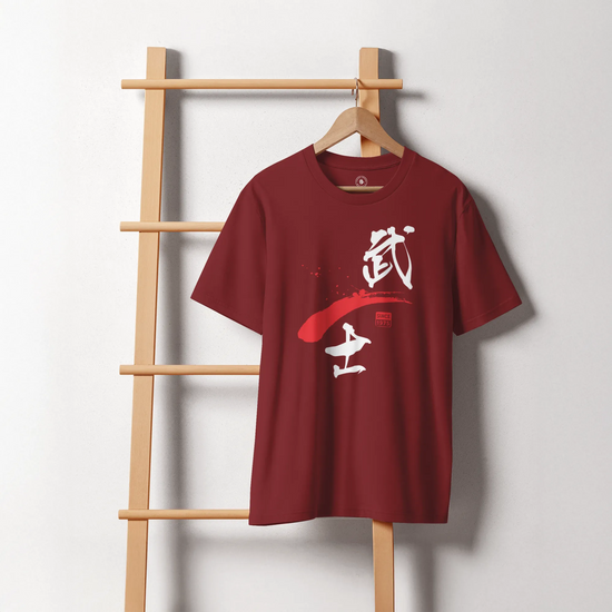 Dynamic “武士” calligraphy with a red brush stroke and personalized birth-year stamp—your modern warrior identity.