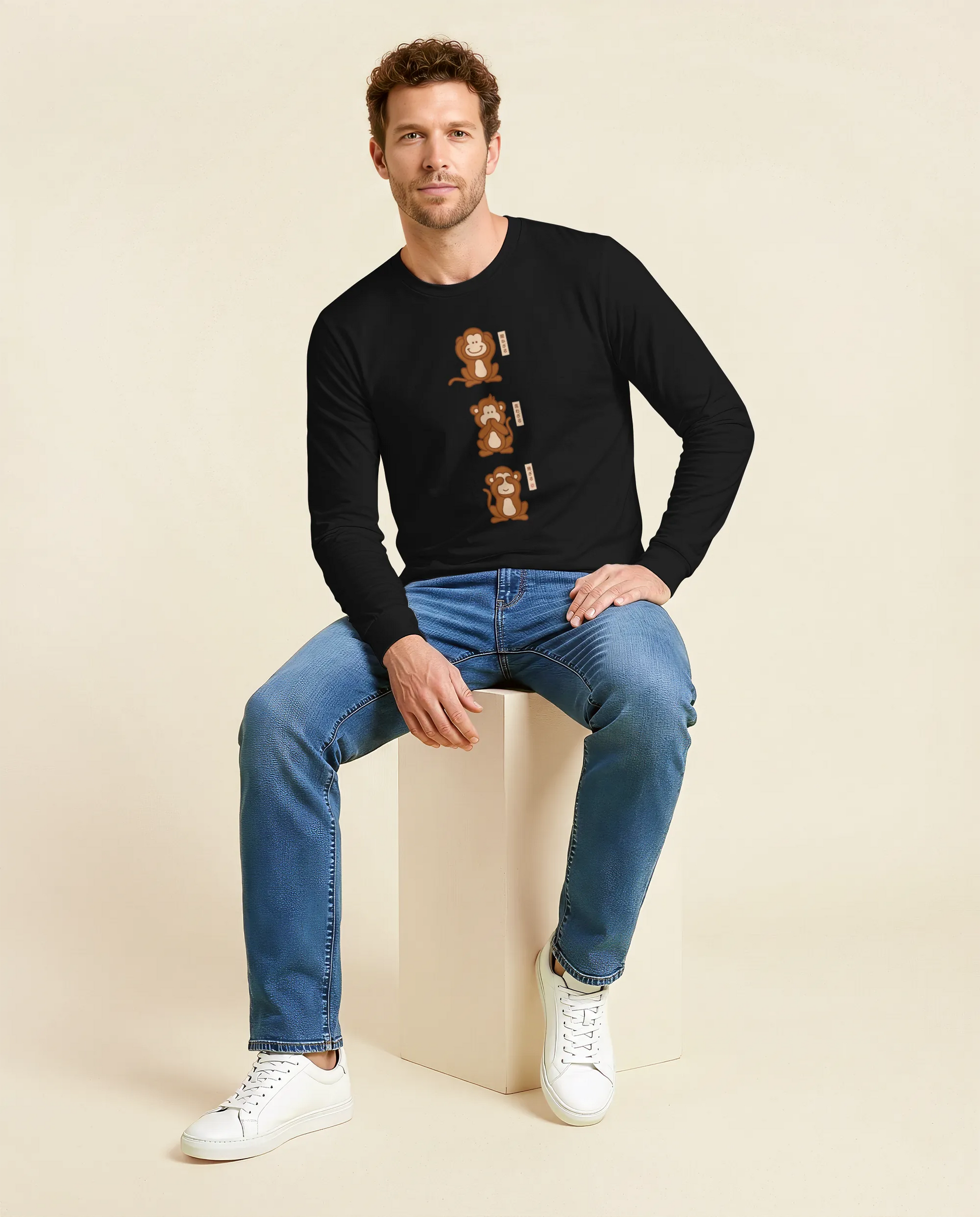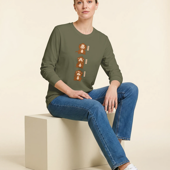 Three wise monkey Ukiyo-e Unisex Long Sleeve Tee
